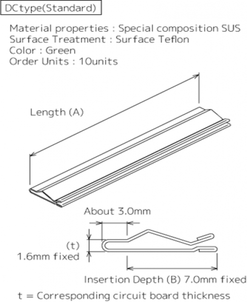 Corresponding circuit board thickness (t) : Thickness: 1.6mm Can be used at a ± 0.1 dipping depth ≤ t